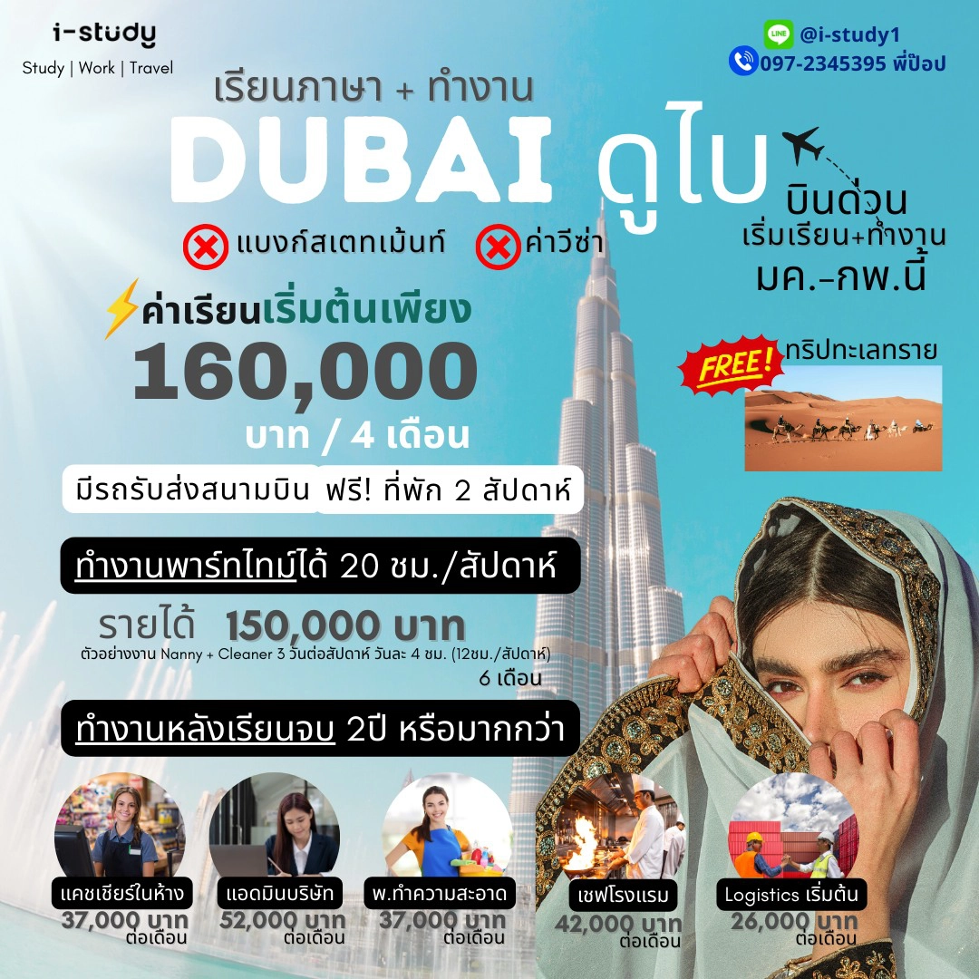 บินลัดฟ้าไปดูไบ! เรียนภาษา + ทำงานถูกกฎหมาย